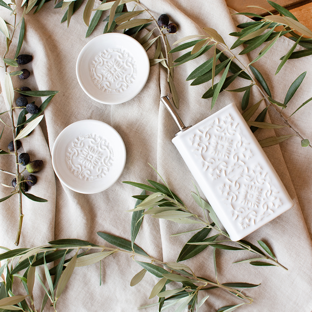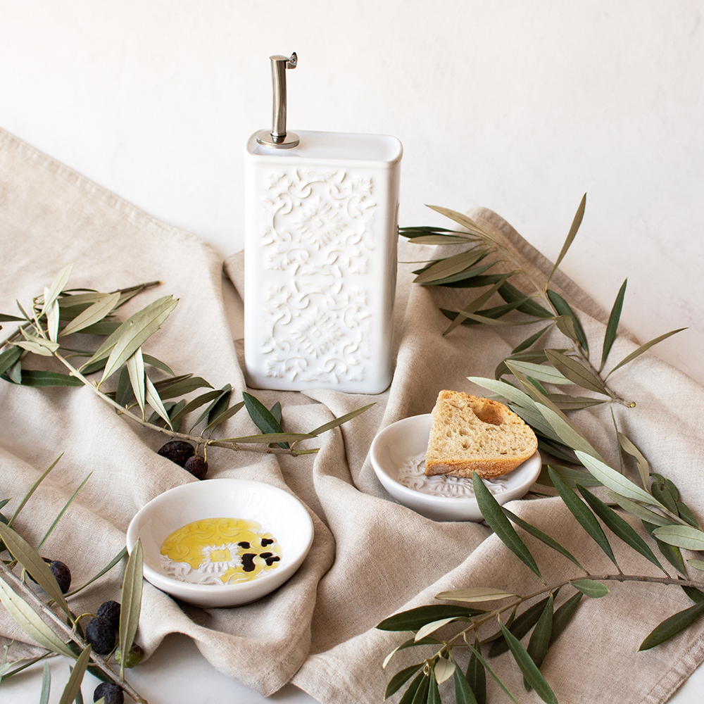 Ca Atlântica-Azulejo-浮雕花磚油料碟(一組兩只)-煙燻白-Ø9.5cm